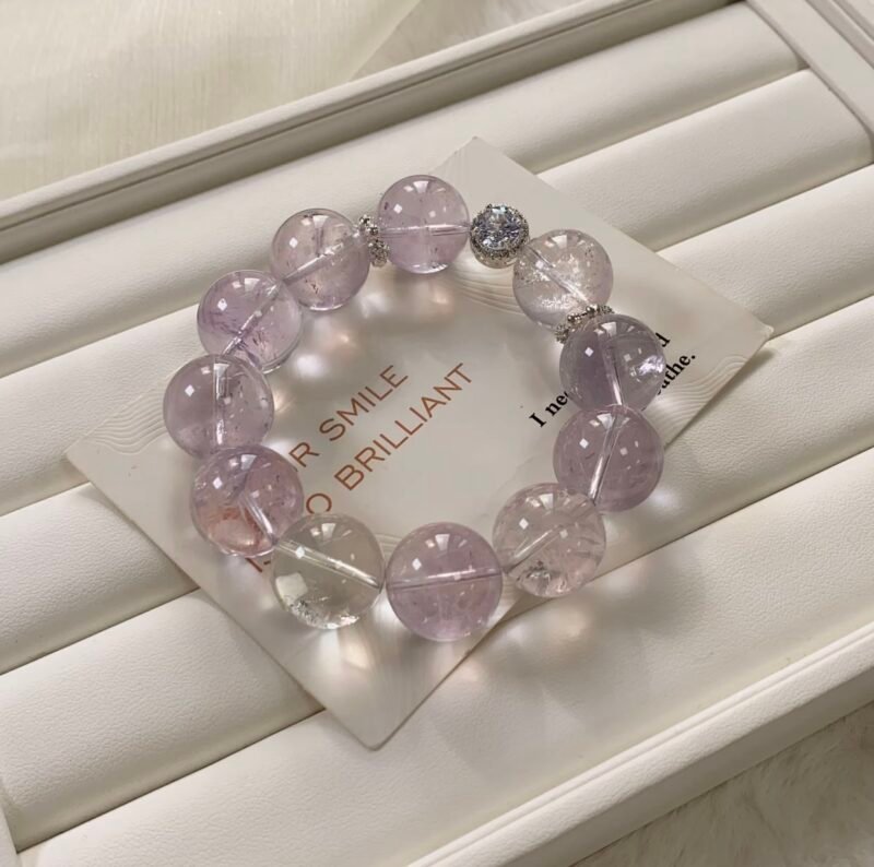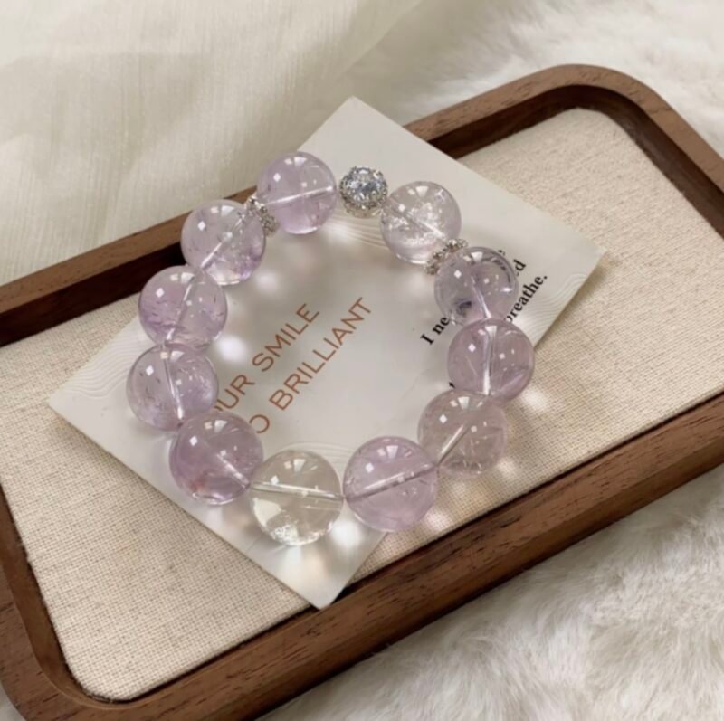 An amethyst bracelet calms emotions, eases anxiety, keeps you composed and sharp under pressure, and boosts focus and decision-making. Aligned with the third eye chakra, it awakens intuition and spiritual awareness; wearing it before bed or placing it by your pillow improves sleep quality and relieves insomnia. Daily wear draws positive energy, clears negative auras, and fosters inner peace—ideal for meditation, work, or daily relaxation.