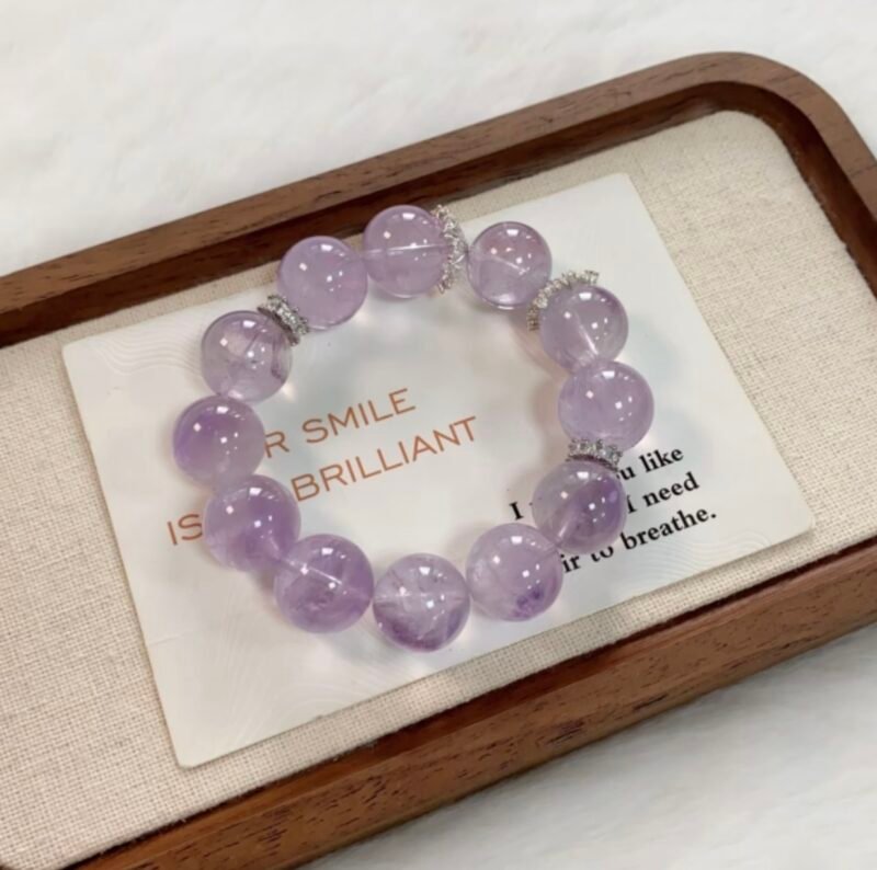 An amethyst bracelet calms emotions, eases anxiety, keeps you composed and sharp under pressure, and boosts focus and decision-making. Aligned with the third eye chakra, it awakens intuition and spiritual awareness; wearing it before bed or placing it by your pillow improves sleep quality and relieves insomnia. Daily wear draws positive energy, clears negative auras, and fosters inner peace—ideal for meditation, work, or daily relaxation.