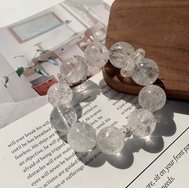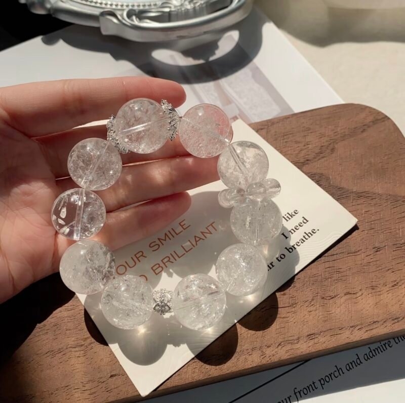 Wear white crystal closely on your wrist to better absorb its purifying energy and high-frequency magnetic field, which helps dispel negative auras and boost focus. Calibrate its energy by leaving it under moonlight overnight before first wear. Daily care: avoid strong acids, alkalis, and sharp objects to prevent crystal surface damage that may hinder energy conduction. Avoid over-mixing with dark crystals to prevent interference with its pure energy field. Remove before bed and place in a dry, clean area. Weekly maintenance: rinse with clean water and expose to sunlight for 10 minutes to maintain transparency and energy vitality. Long-term wear strengthens your energy connection with the crystal, aiding emotional stability and intuitive awareness.